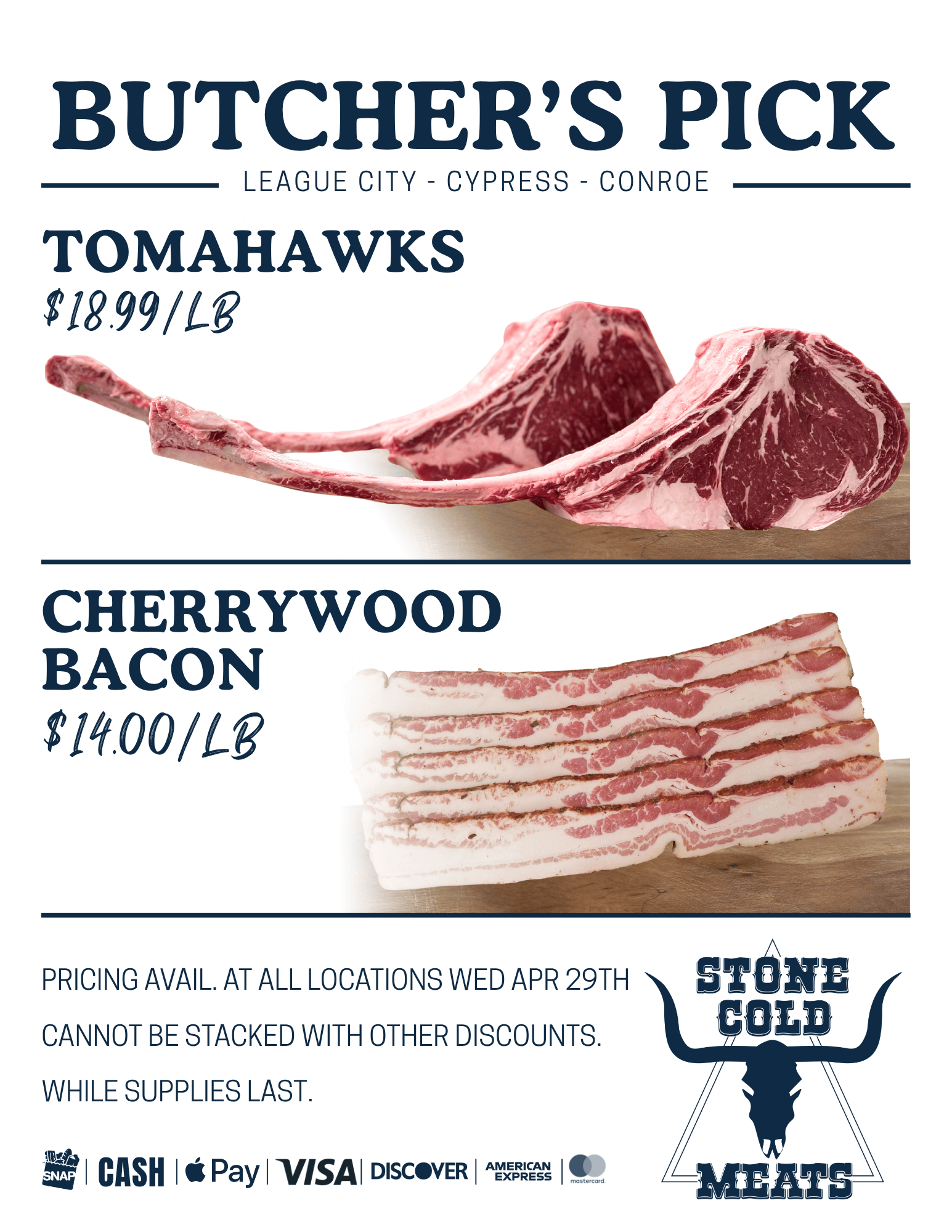 Claim your crown and show off your skills with these bad boy Tomahawks at $18.99/lb.